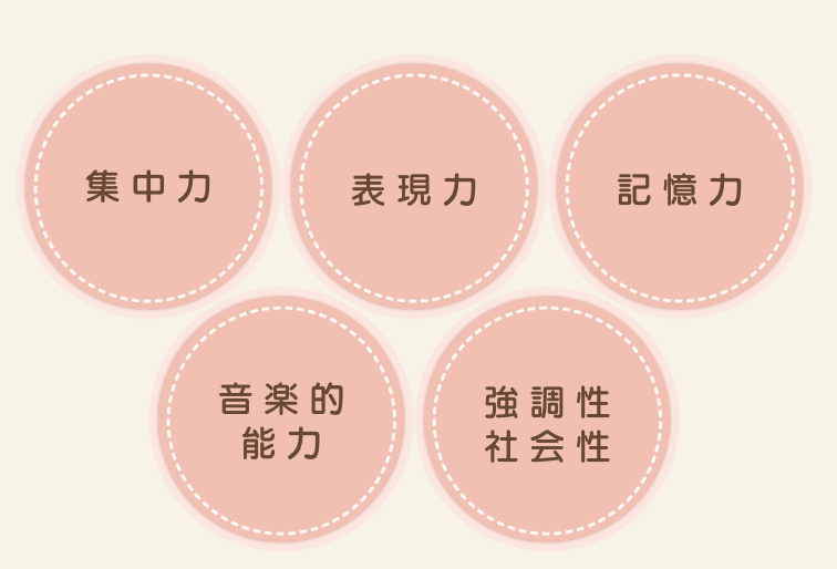 リトミックとはスイスの作曲家ダルクローズにより考案された、世界でもっとも注目されている音楽教育法のひとつです。音楽を楽しみながら音楽的能力だけでなく、人間力まで育てます。