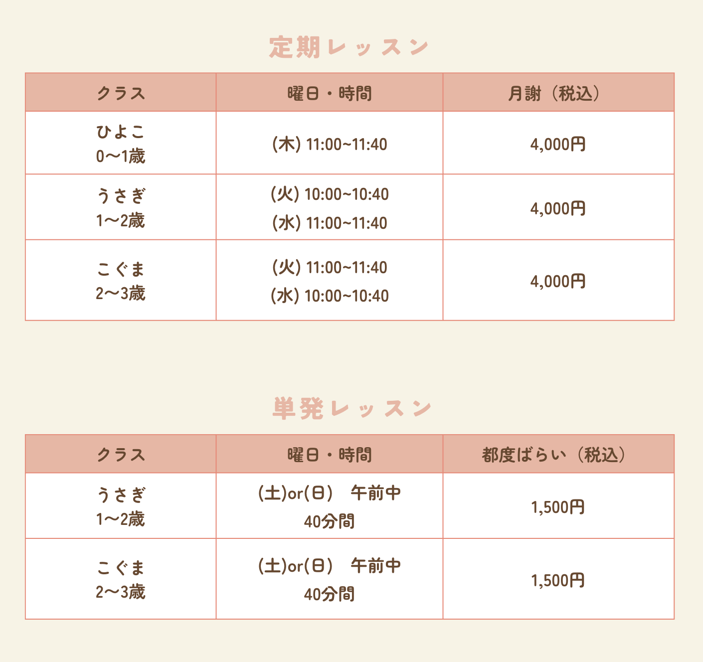 ※単発レッスンの日程は公式ラインやインスタグラムにて公開しております。